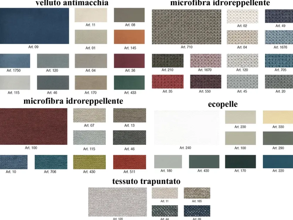 Disponibile nelle varianti di Tessuto in una vasta gamma di colori cat A