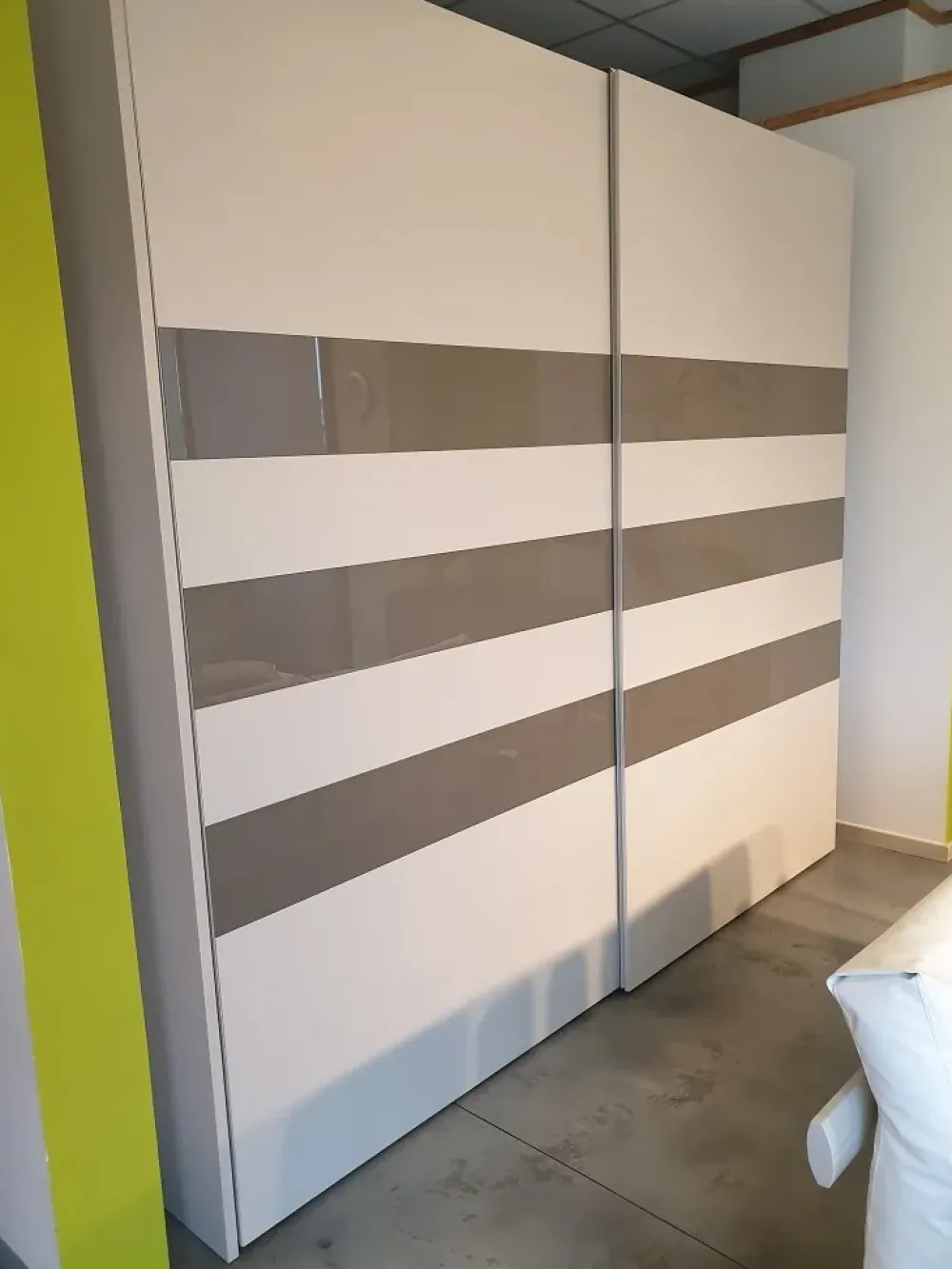 Armadio ante scorrevoli laccato poro aperto e vetro lucido .