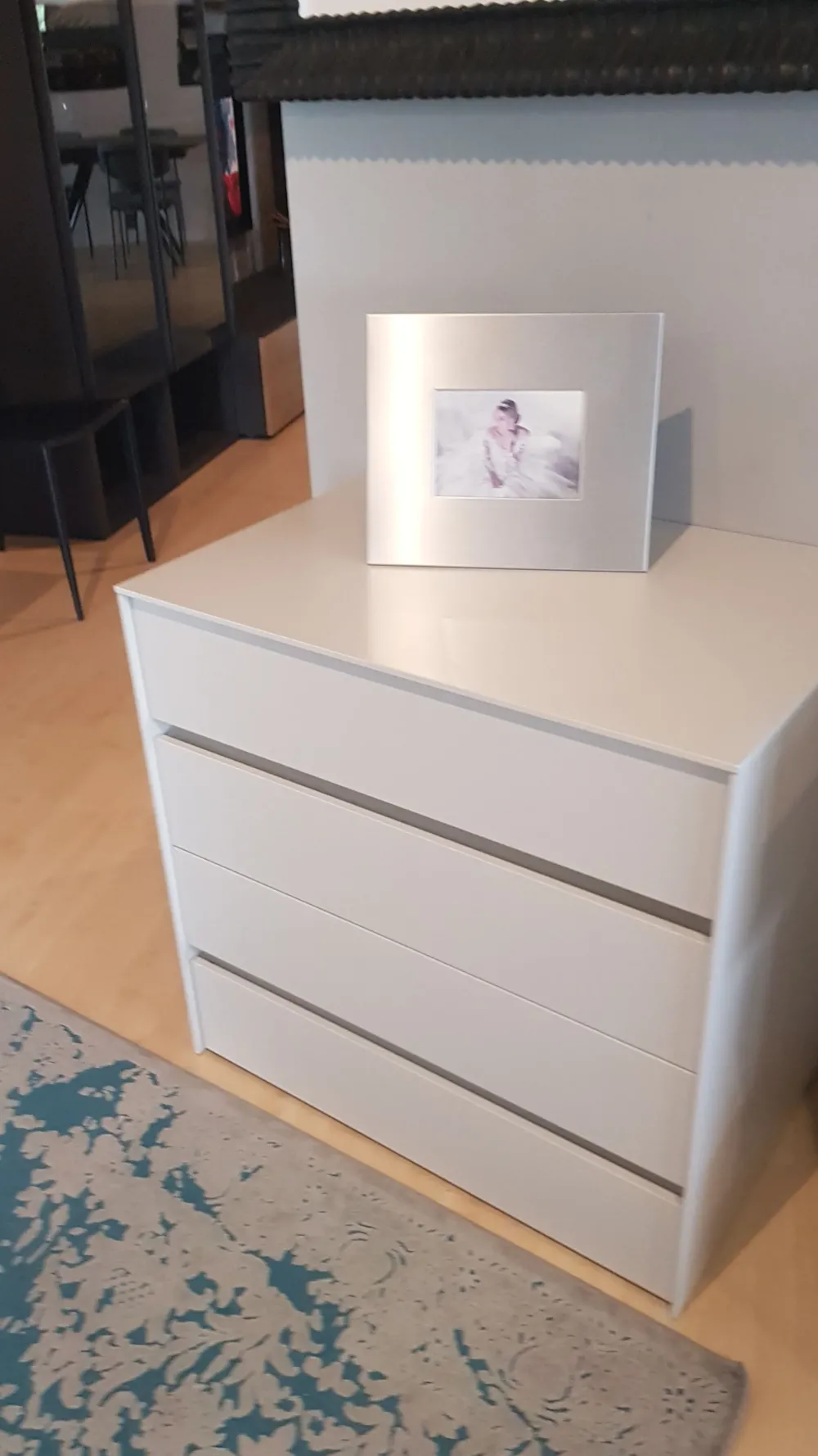 Linee decise e materiali durevoli connotano tutte le cassettiere e i comò Novamobili: scopri il modello Cassettiera pitagora in laccato opaco qui disponibile e completa la tua camera da letto.