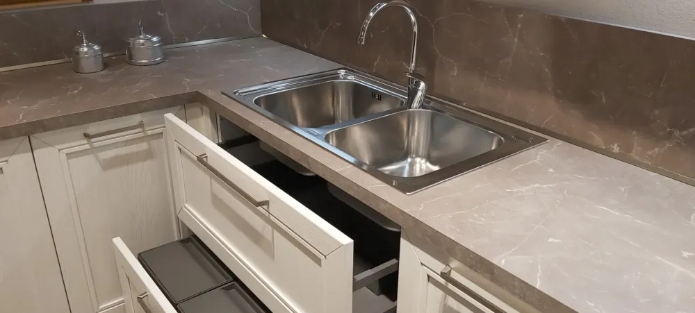 Arredo3 garantisce cucine di qualità elevata, tra cui la cucina Mod opera bianche ora in Offerta Outlet.
