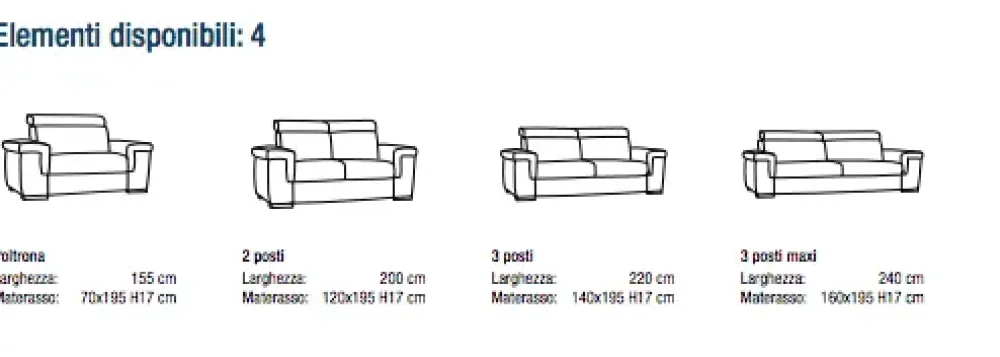 Tutti i tessuti e le varianti disponibili a campionario Dimensioni: Altezza: da 94 a 109 cm Profondità: 100 cm Profondità apertura letto: 215 cm Materasso altezza 17 cm