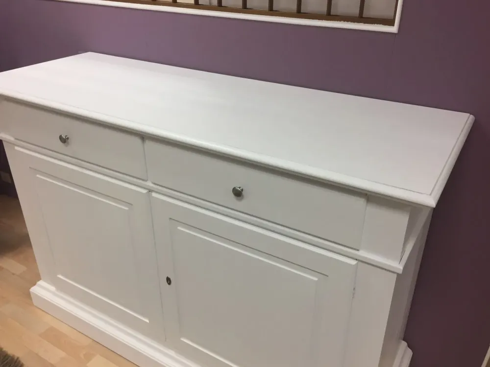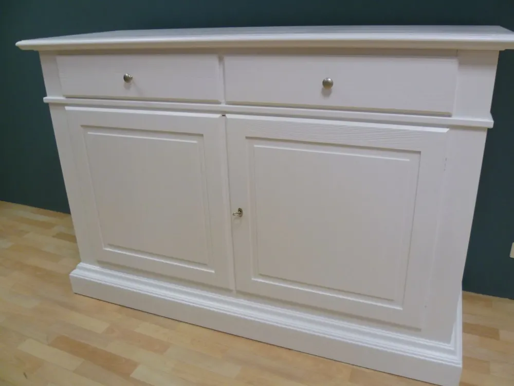 Madia in legno 2 ante 2 cassetti con guide in legno 1 ripiano in legno finitura laccato sabbiato L 164 cm Prof 53 cm H 110 cm ca .