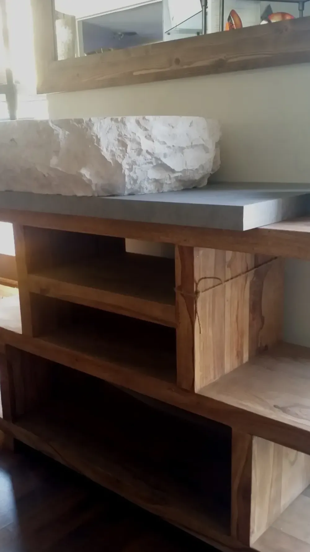 Mobile bagno etnico light beolo in legno etnico iroko con lavabo in pietra granito colore beige white eco il mobile in noce indiano di sessham wood in offerta super convenienza realizzato artigianalmente in india con studio made in italy la consolle del mobile e di misura cm 120 x 40 h 75 si compone poi il mobile arredo bagno di un piano di lavoro in smile cemento piano impermeabile adatto appunto a superfici da bagno abbiamo poi nella composizione mobile bagno etnico light beolo in legno etnico iroko con lavabo pietra granito beige white il mobilein legno di sessham wood in offerta super convenienza il mobile si compone aqppunto di essere bifacciale ed avere dei ripiani aperti sui lati da creare un effetto leggero ma robusto dovuto al legno masello un bello specchio in stile etnico industrial con scritte su botti di legno da cm 120 x 80 vendiamo on line in tutta italia con consegna e spedizione in tutta italia prezzo a parte