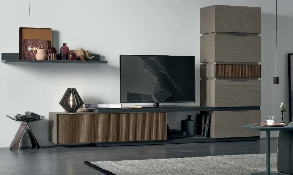 - La composizione qui visibile per il tuo soggiorno è, così come ogni altro pezzo di arredamento Tomasella, costruita in materiali pregiati e che resistano nel tempo, come il legno: ultimare il tuo soggiorno con il minimo sforzo e con gli esiti sperati non sarà più solo un sogno.