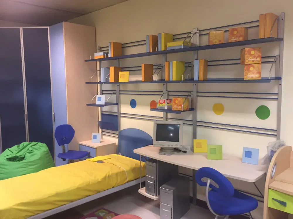 cameretta da affare per rinnovo mostra , altre camerette in mostra con varie soluzioni , letti a terra e letti a soppalco e con meccanismi .