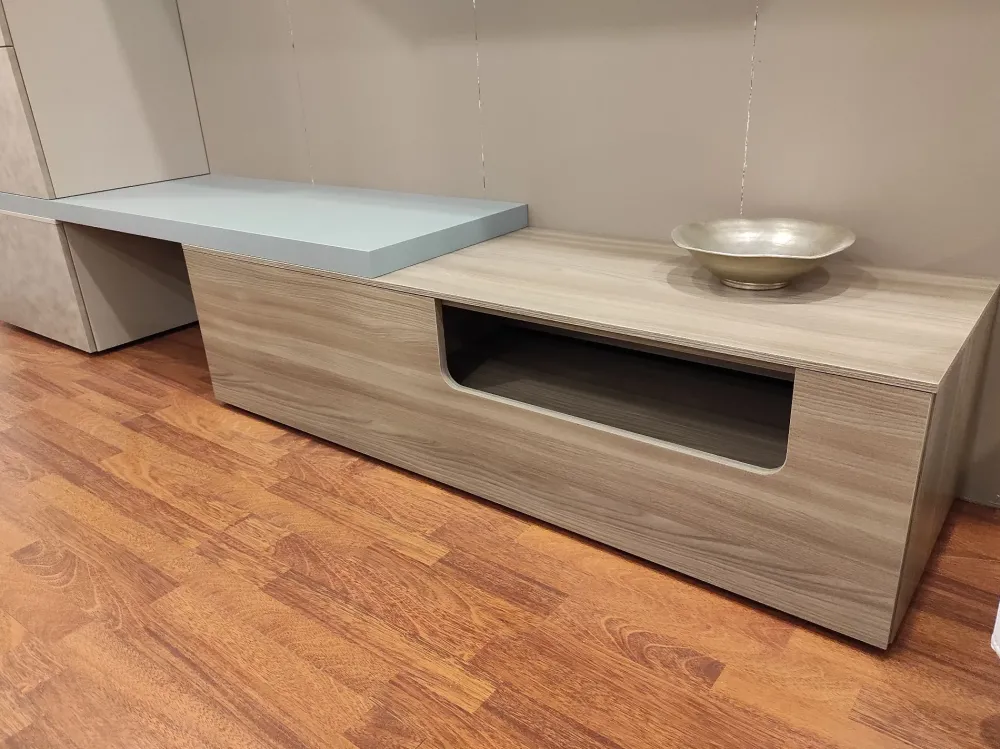 - La soluzione per il soggiorno qui presente è realizzata in materiali durevoli e resistenti nel tempo: questo modello, in particolare, è in laminato opaco.