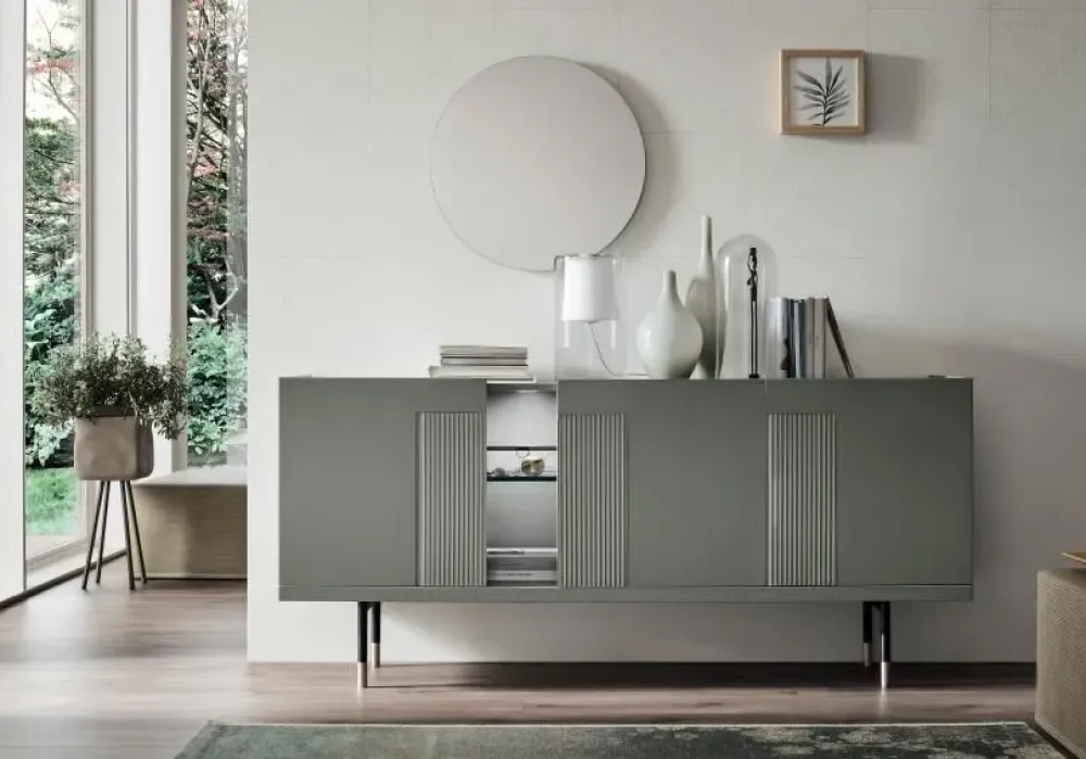 - Posizionamento a terra: la Madia Aura Glass di A.C.F. può essere posizionata a terra, rendendola facile da spostare e adattabile a qualsiasi ambiente.