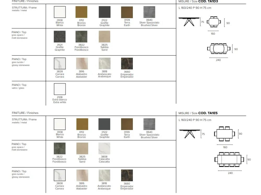 Dimensioni: 160×90 cm estensibile a 240 cm.
