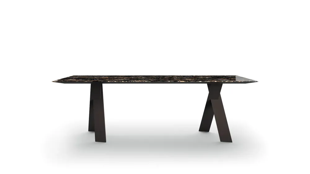 Tailor è un tavolo caratterizzato da un eleganza senza eguali. Tailor è disponibile in un ampia gamma di dimensioni, che raggiungono i 3 metri. Il piano in legno è lavorato nella parte inferiore, facendo percepire una superficie leggera e sottile. Il basamento metallico è costituito da due gambe centrali con design incrociato.