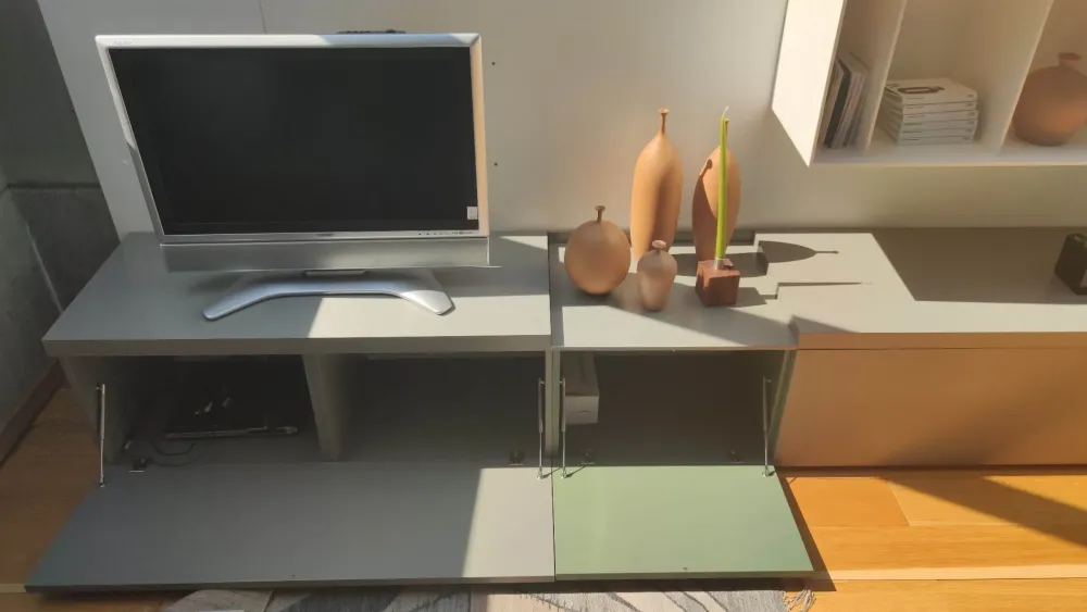 - Il materiale laccato opaco conferisce alla libreria un aspetto moderno ed elegante.