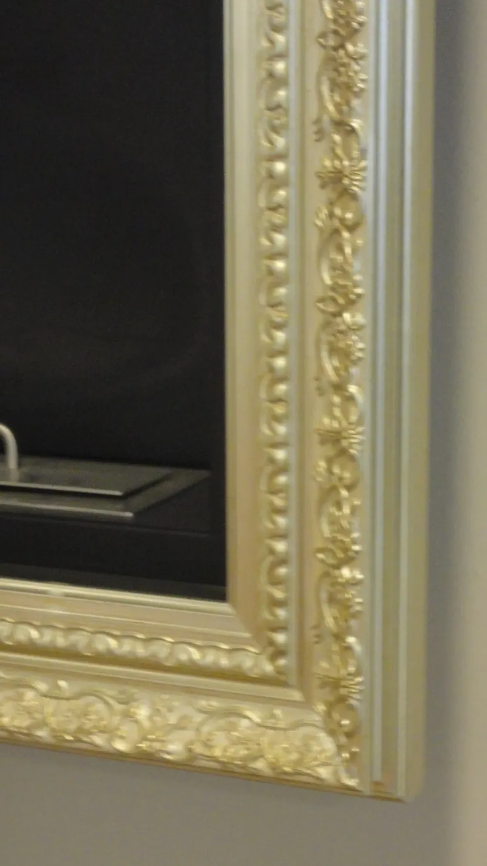 La struttura è in finitura nera e la cornice è decorata .