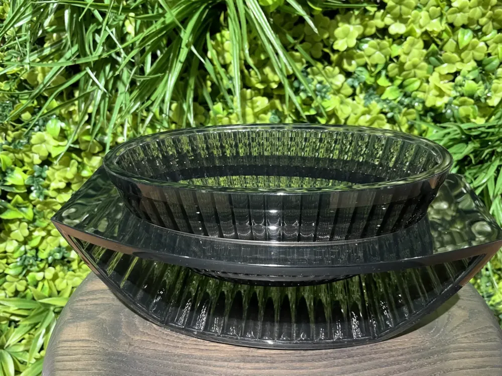 Kartell vaso U Shine, design by Eugeni Quitllet. U Shine si ispira alle linee dell’art déco. U Shine può essere utilizzato sia come vaso, sia come centrotavole, è interamente realizzato in PMMA trasparente e misura 14 cm d’altezza, 29 cm di lunghezza e 14 cm d’altezza.