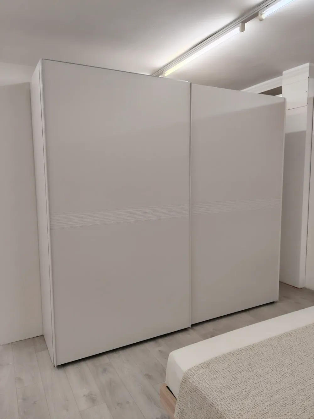Armadio scorrevole mod. FAST a 2 ante con fascia centrale effetto millerighe – Dimensioni Armadio: CM L. 277,5 x H. 255 x P. 65