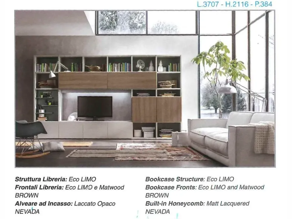 - I mobili e complementi del living non devono mai essere ingombranti, per questo motivo è fondamentale valutare anche le misure della composizione scelta: il modello mostrato in foto ha una larghezza che va da 301 a 350 cm.