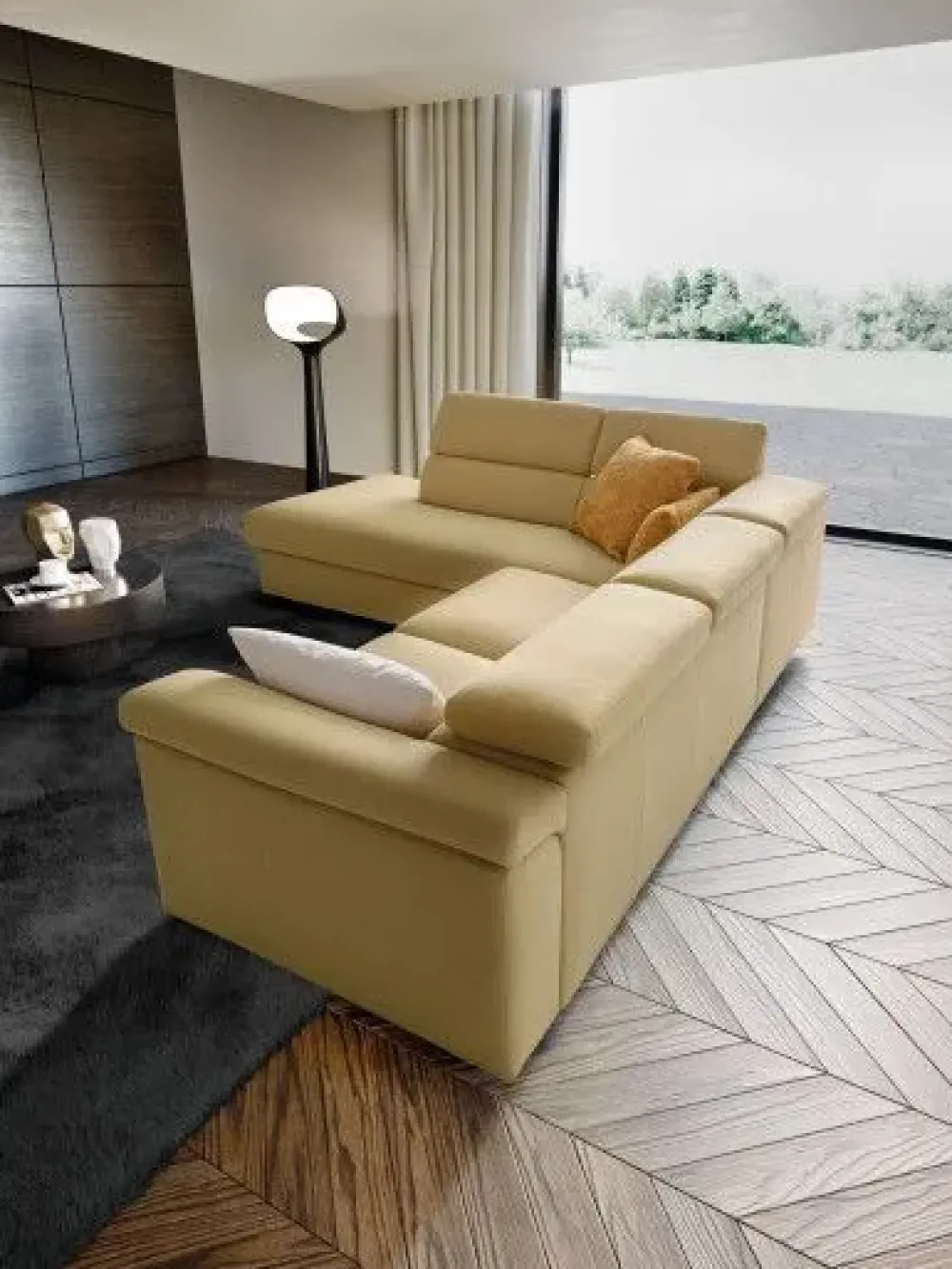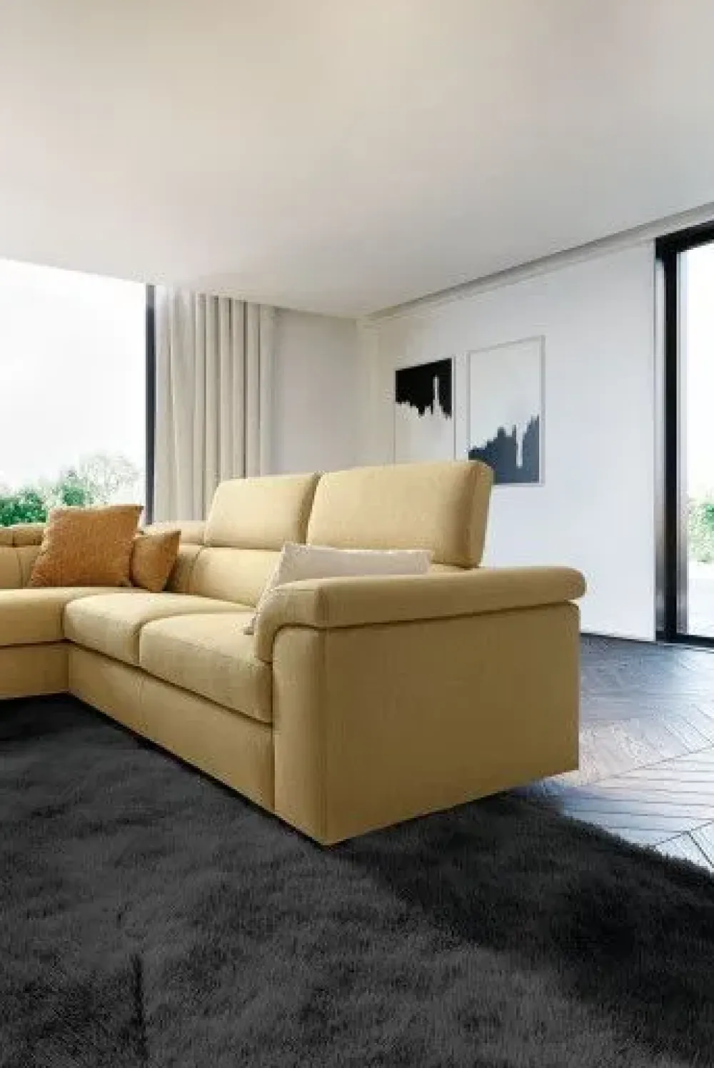 - I pezzi di arredo, tra cui anche gli imbottiti, non devono mai risultare ingombranti, soprattutto per quanto concerne lo spazio che occupano all’interno dei locali; non per altro è così rilevante valutare con attenzione anche le loro dimensioni: il modello di Divano angolare presente in foto fa parte della serie di imbotti del marchio di lunghezza che varia da 251 a 275 cm ed è quindi ideale per un ambiente di molteplici dimensioni.