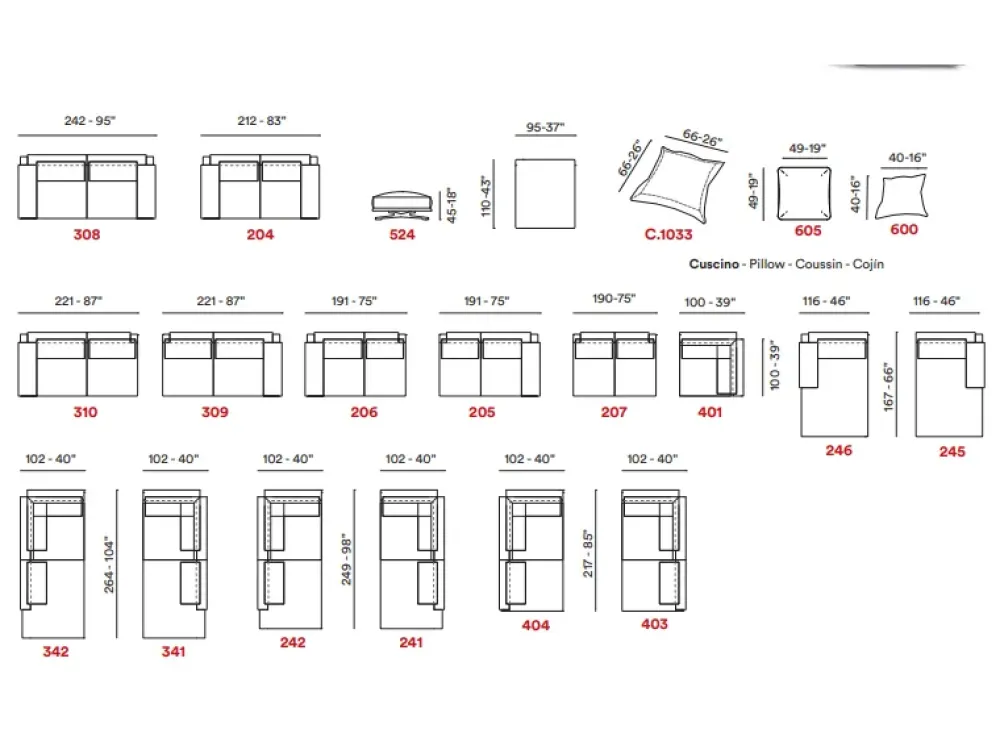 - I pezzi di arredo sono da scegliere attentamente non solo per quanto riguarda i materiali con cui sono stati costruiti, ma pure per quanto riguarda le misure e lo spazio che impegnano negli interni domestici: il modello qui disponibile fa parte della fascia di imbottiti che vanno da 301 a 325 cm.