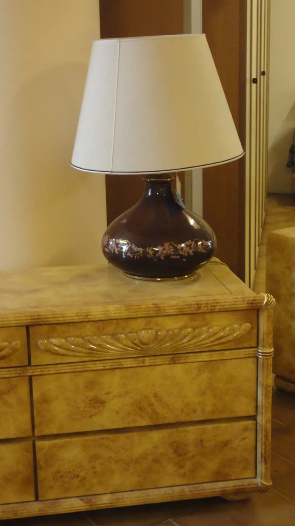 Sia la struttura ed i frontali cassetti sono in finitura radica lucida.