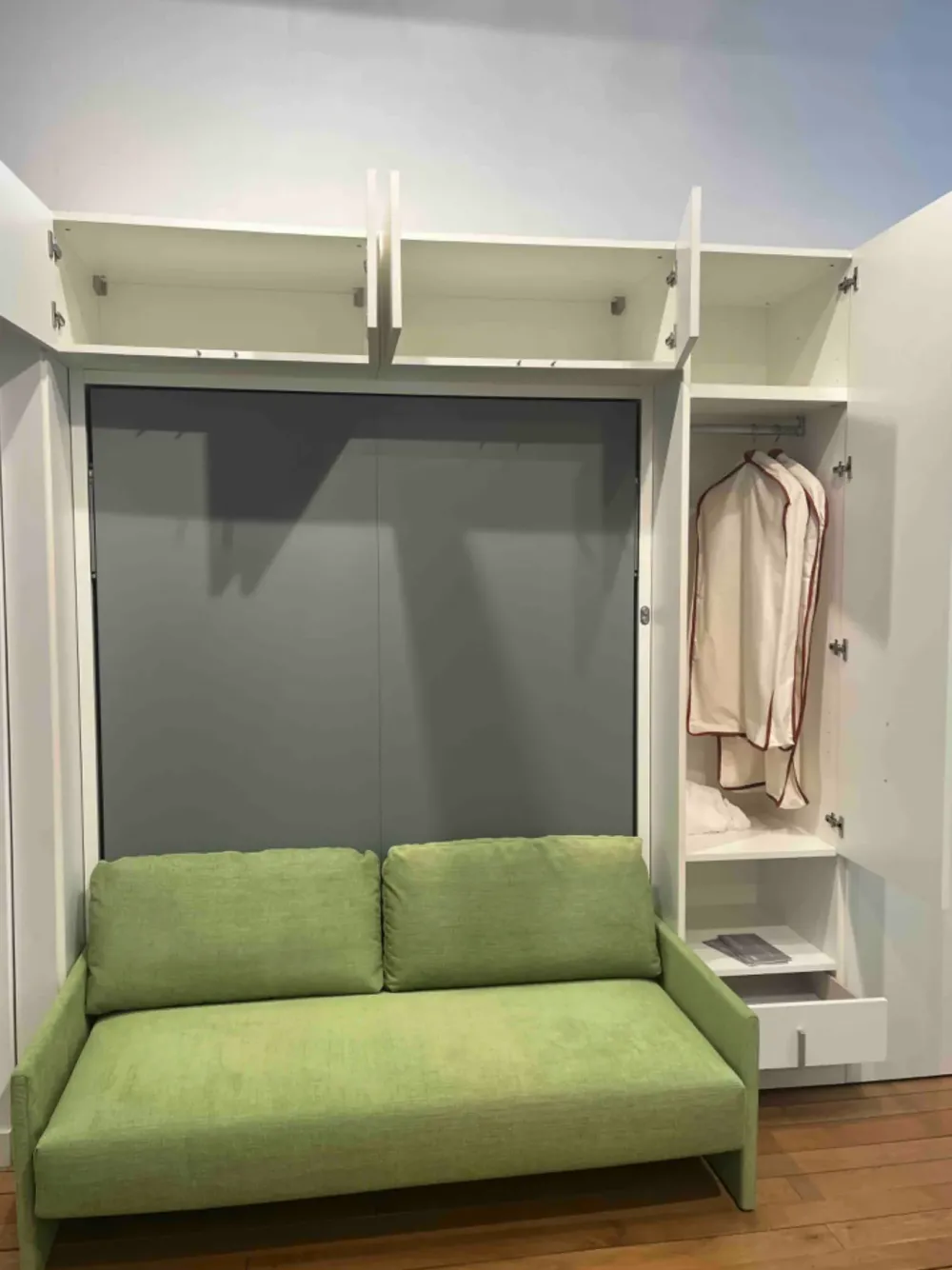 Il marchio propone una vasta gamma di letti che possano trovare soluzione alle esigenze pratiche personali: che sia a scomparsa, con giroletto, con vano contenitore o con cassettoni, dovrai valutare attentamente la tipologia del letto che vuoi acquistare; tra le svariate proposte della firma, questo modello è a scomparsa.