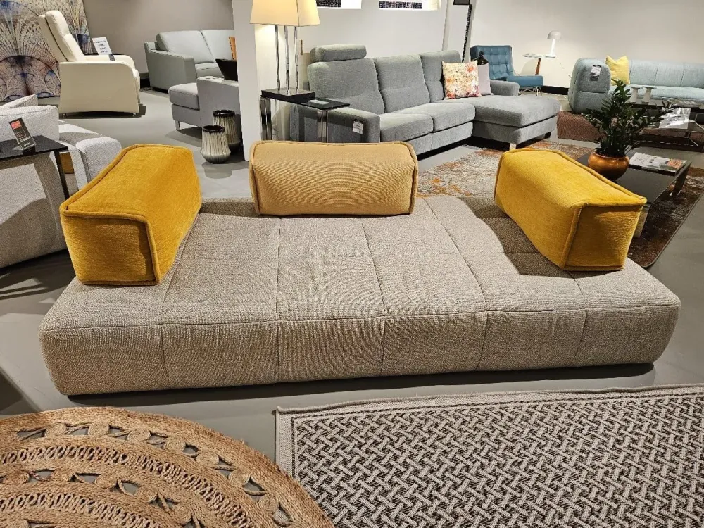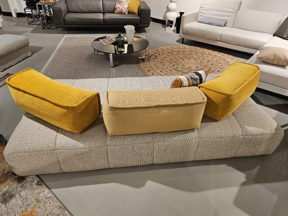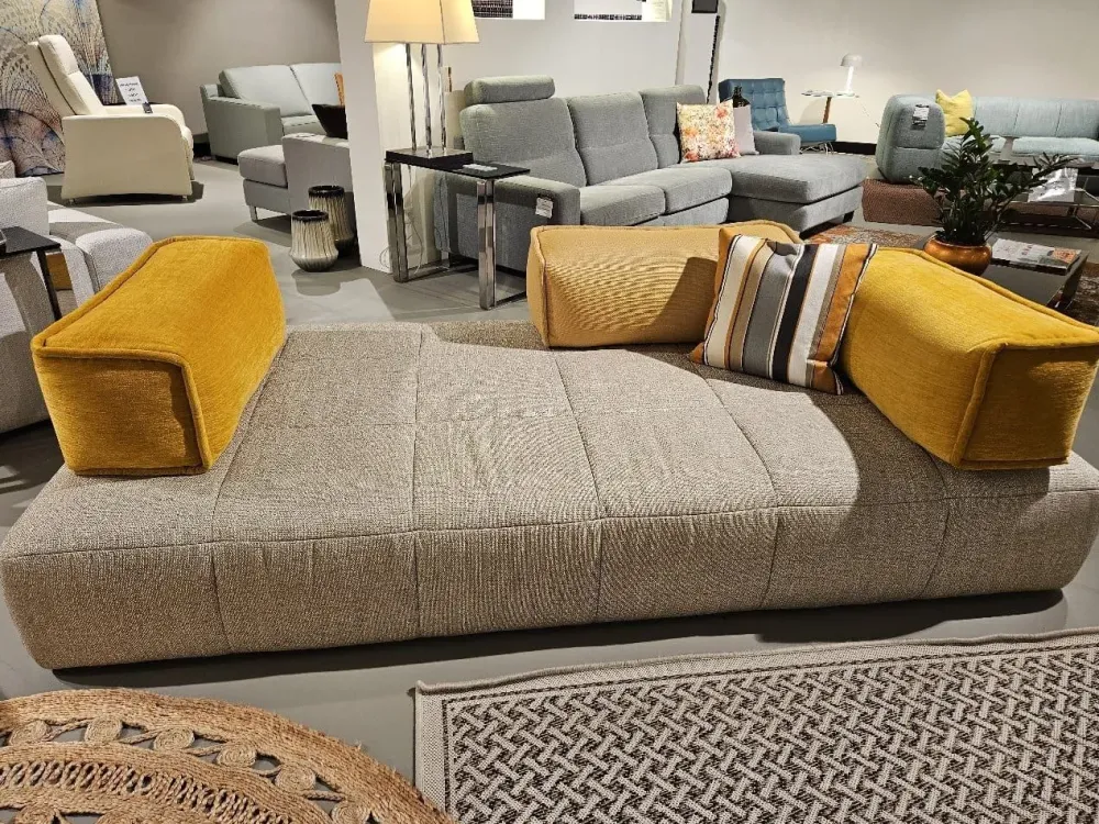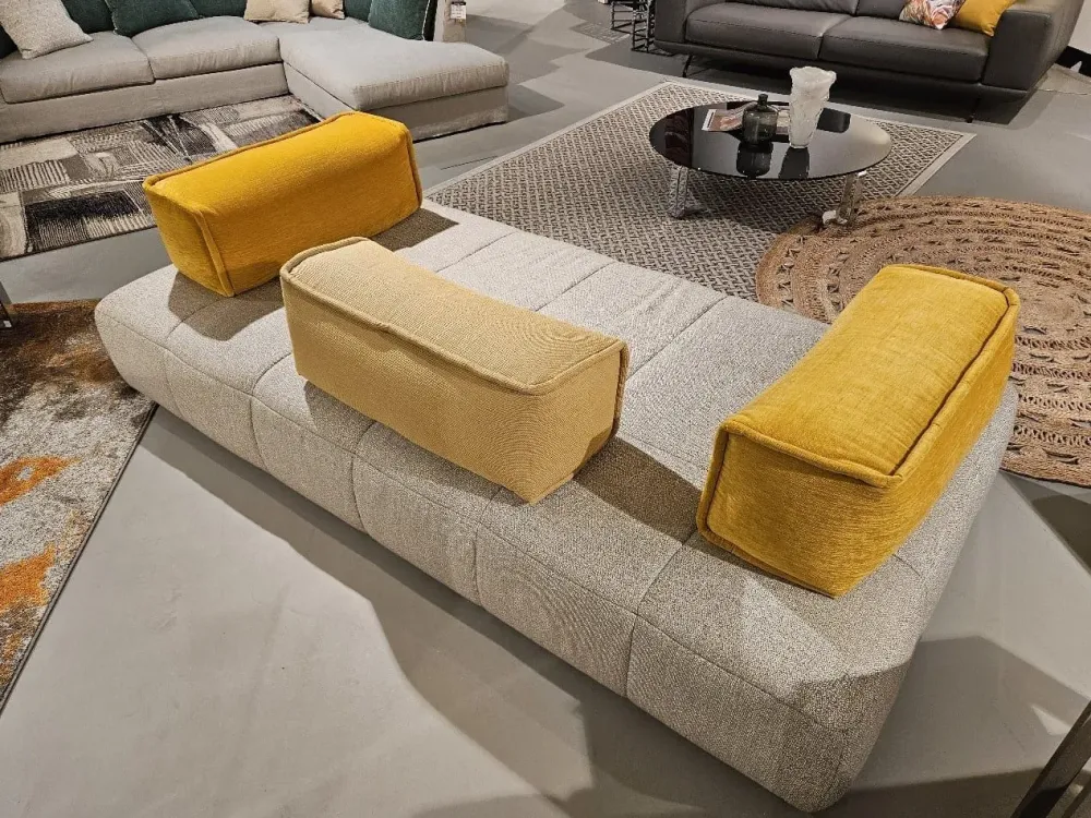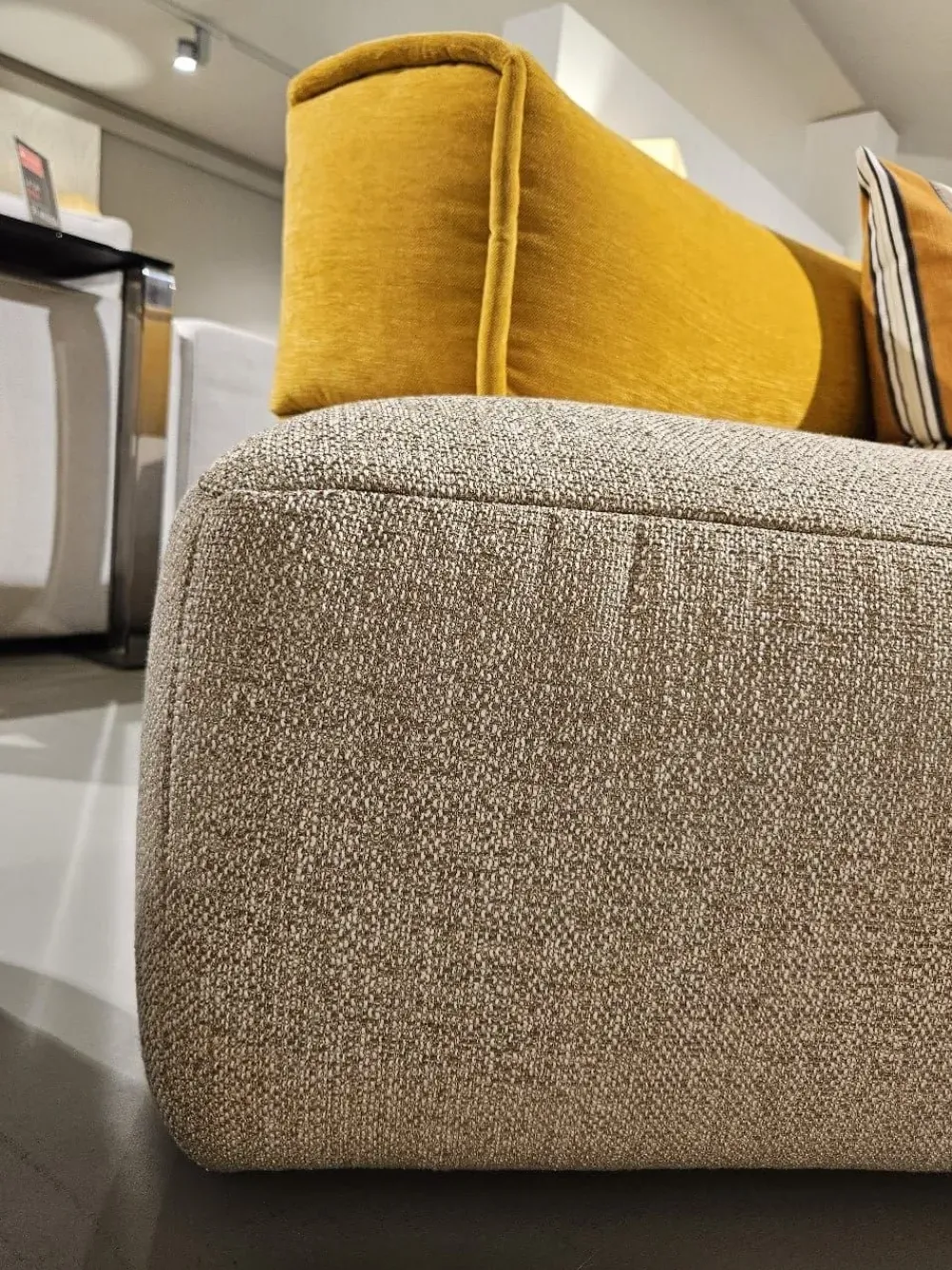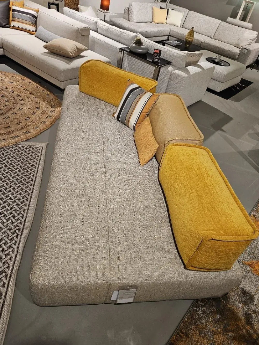 Divano cm.242*122*h.38 con 3 schienali cm. 82*35, i tessuti sono tutti idrorepellenti che proteggono da macchie accidentali, lavabili in lavatrice. Trasporto escluso isole e autoscala. ARTICOLO DI ESPOSIZIONE