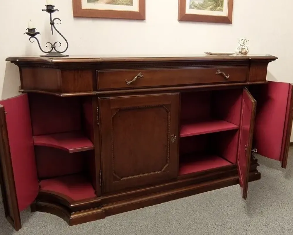 La credenza ha un cassetto, due ante frontali e due ante laterali (a prima vista nascoste)
