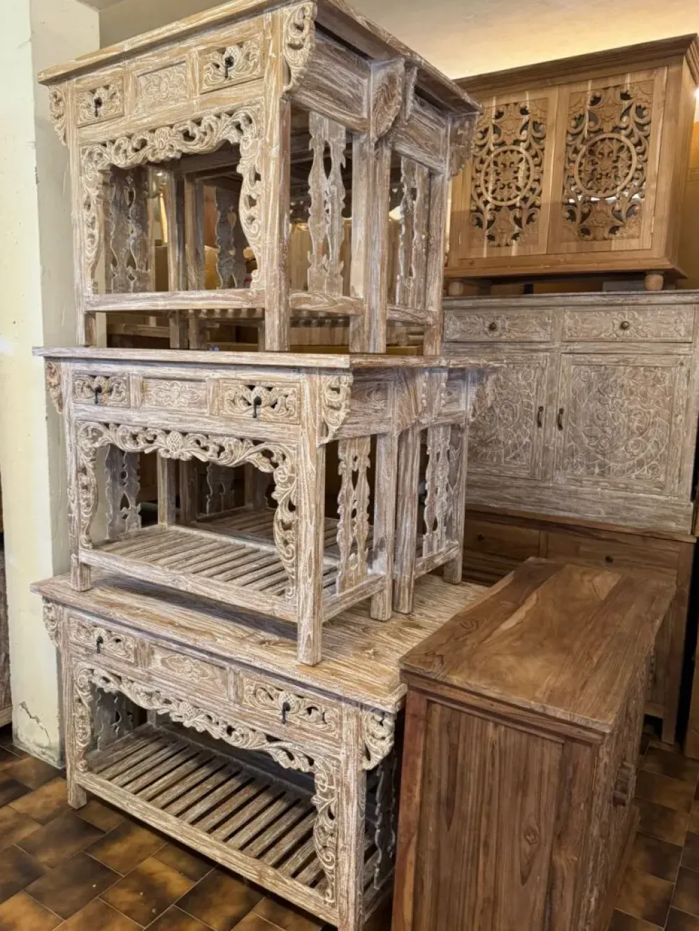 Consolle Bagno Teak Decapata , Consolle etnica orientale prodotto artigianale in legno di Teak massello riciclato, con finitura sbiancata.