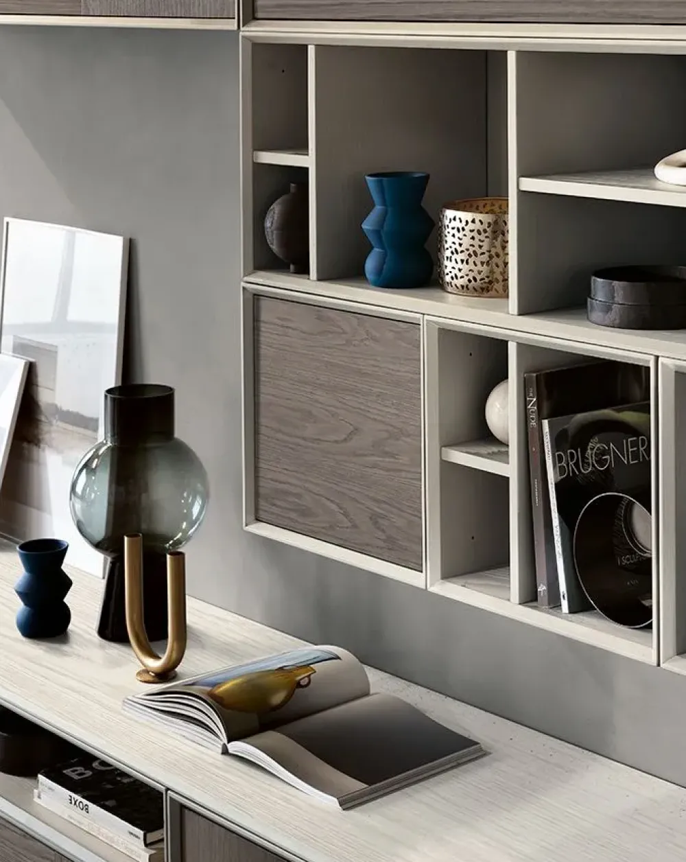 La zona giorno si compone di differenti mobili ed elementi accessori capaci di ultimare lo spazio ottimizzando ogni angolo ; tra questi c’è sempre una parete attrezzata come il modello Spezie di Le Fablier mostrato in foto, ideale per dare vita a un soggiorno dinamico e operativo.