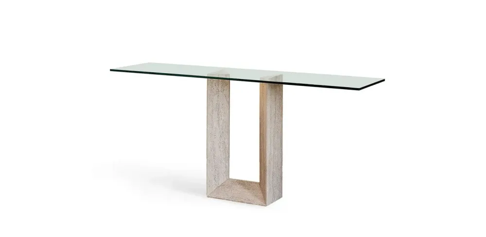 - La consolle Diapason qui visibile ha un piano costruito in vetro di grande effetto visivo, su cui potrai posare oggettistica d’uso quotidiano nonchè propriamente decorativo assicurandoti anni di resistenza al uso prolungato.