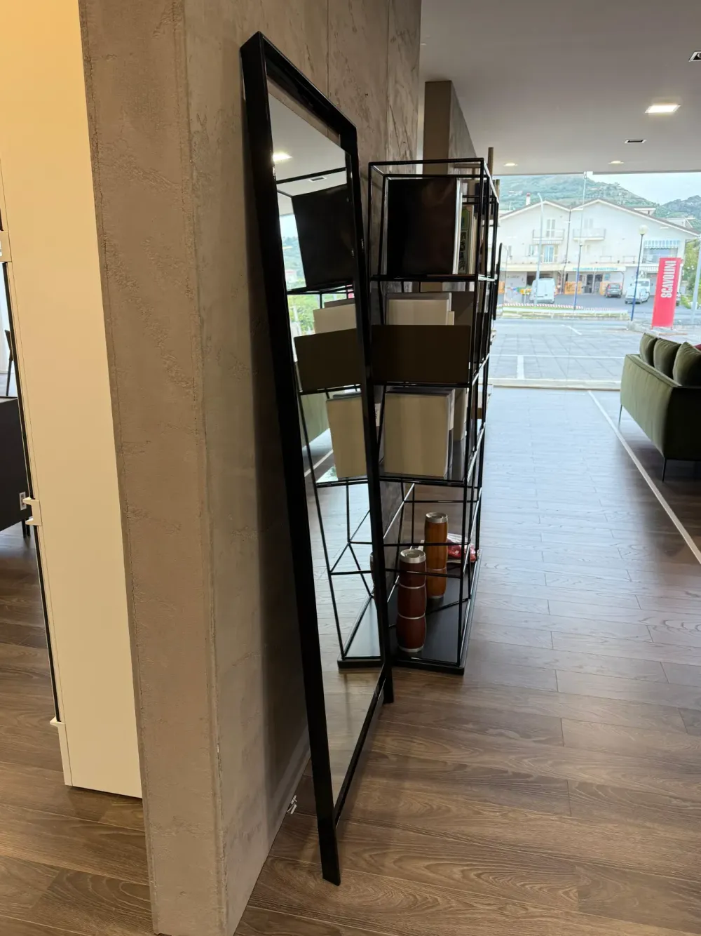 Lo specchio King di Bontempi: struttura in acciaio laccato sottile, design verticale da terra con fissaggio a parete. In offerta outlet scontato.