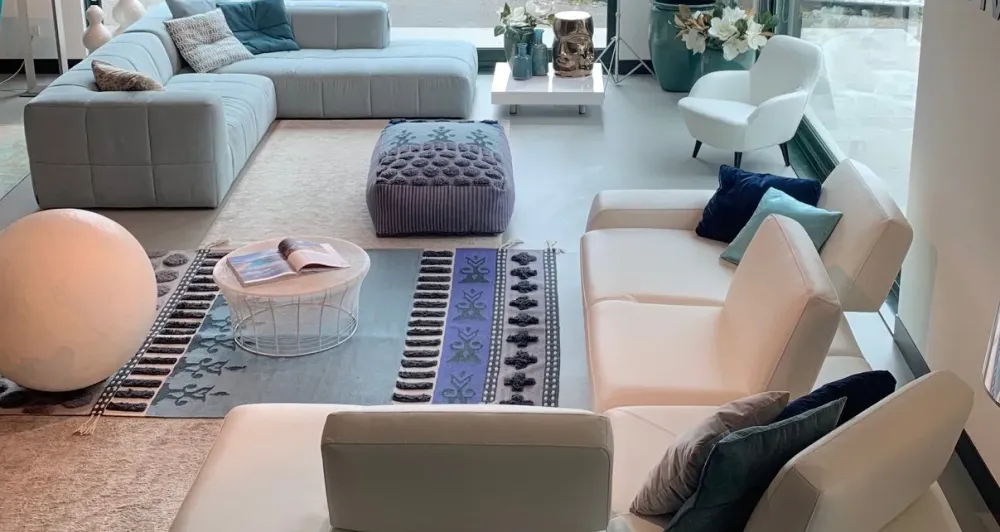 - Il tappeto qui visibile è tramato e annodato in lana, uno dei materiali durevoli che si prestano a comporre ordito, trama e nodi dei tappeti con un certo stile e garantendo, al contempo, resistenza negli anni e grande sofficità. Le proposte d’arredo del marchio sono sempre di qualità eccellente, studiate in ogni particolare sia per quanto concerne l’aspetto estetico, sia per funzionalità ed ergonomia.