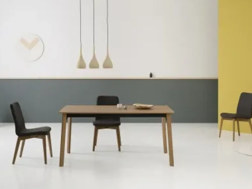 Il tavolo è abbinato alla sedia Cloe ed alla sedia Tata young della Point house disponibile in vari materiali e finiture.