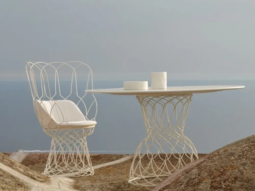 - Questo tavolo Re-trouvè è caratterizzato da una struttura con basamento centrale che ne definisce la resa estetica, totalmente costruito con materiali di prima scelta e che resistano negli anni.
