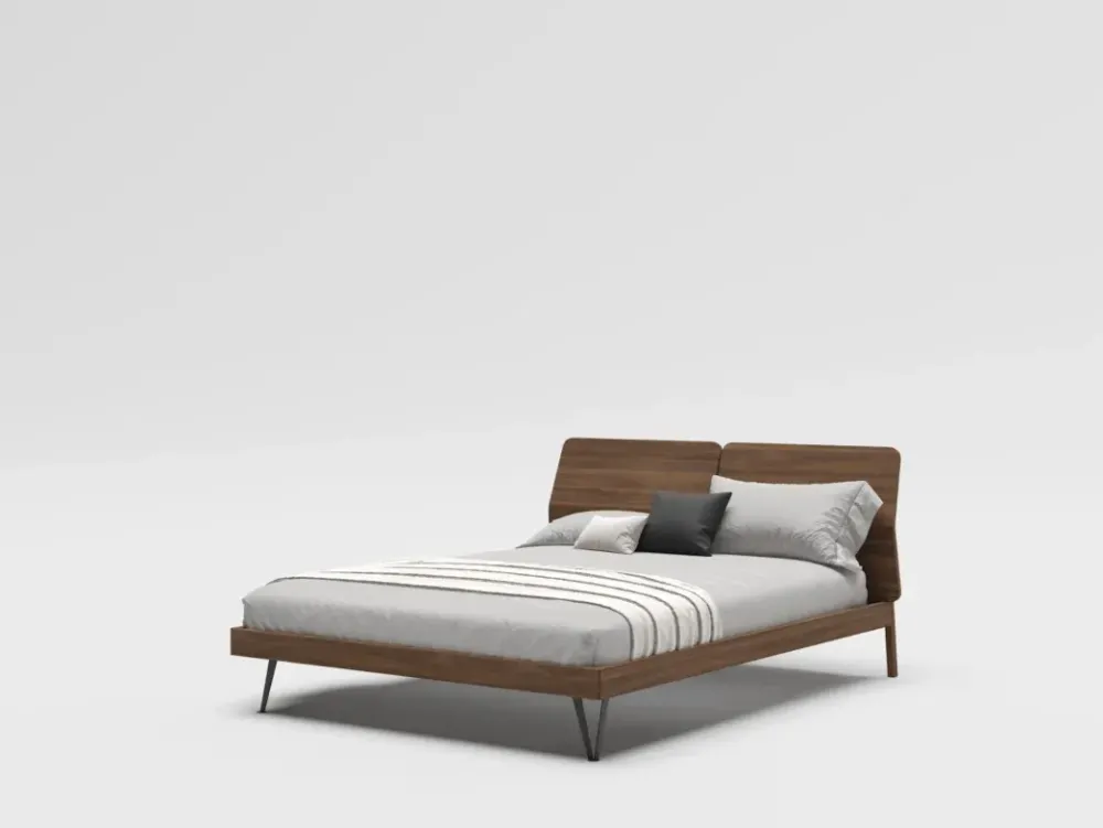 Letto Ofelia con giroletto Alfa in materico Cotto e piede Metal 6 in metallo brunito.