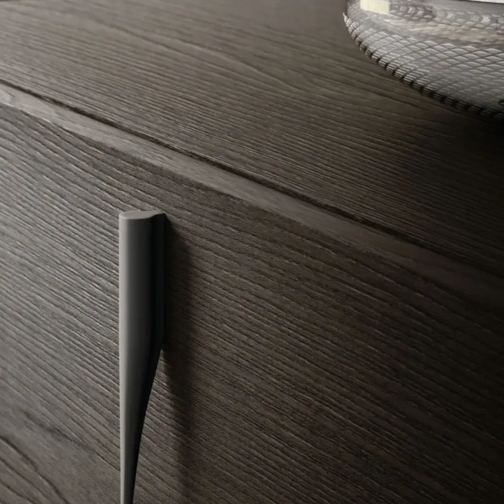 Finiture: Frassino Carbone, laccato opaco Muschio.