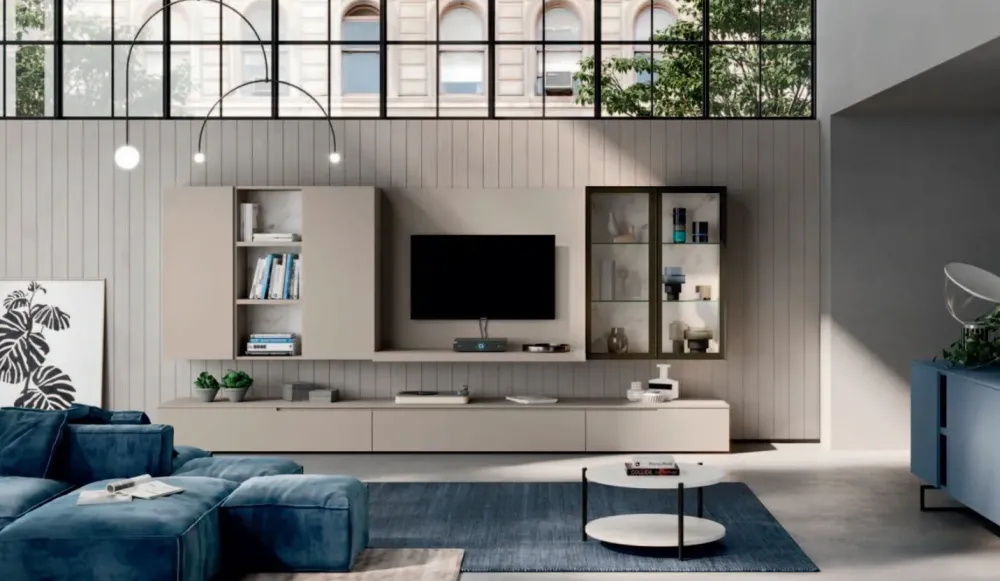 Dai vita al soggiorno dei tuoi sogni: le Pareti Attrezzate di Orme permettono di completare il living con una certa coerenza stilistica.