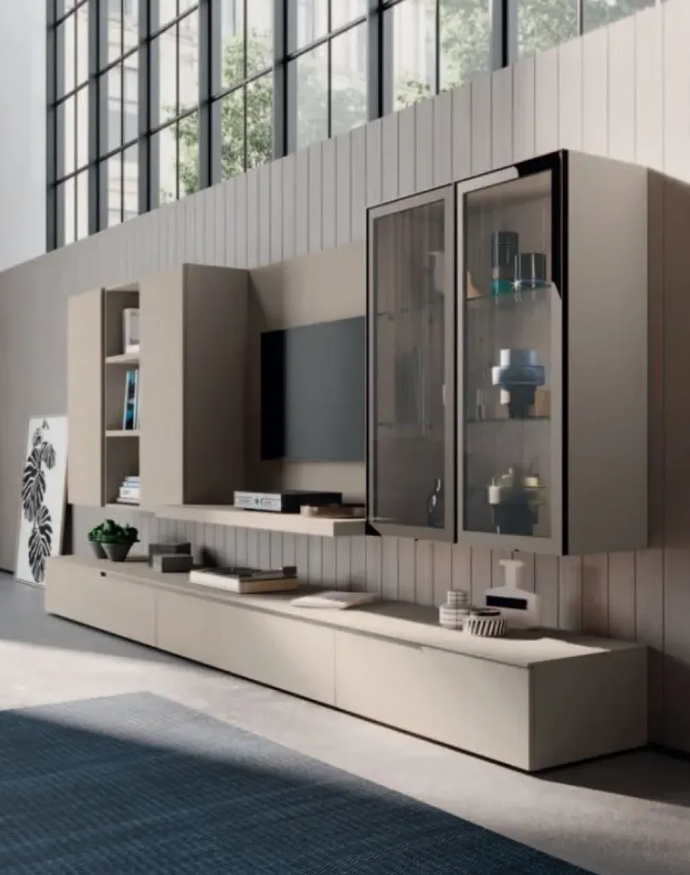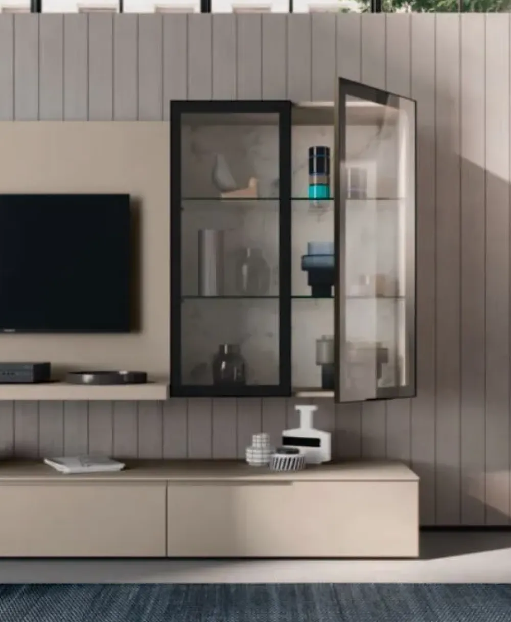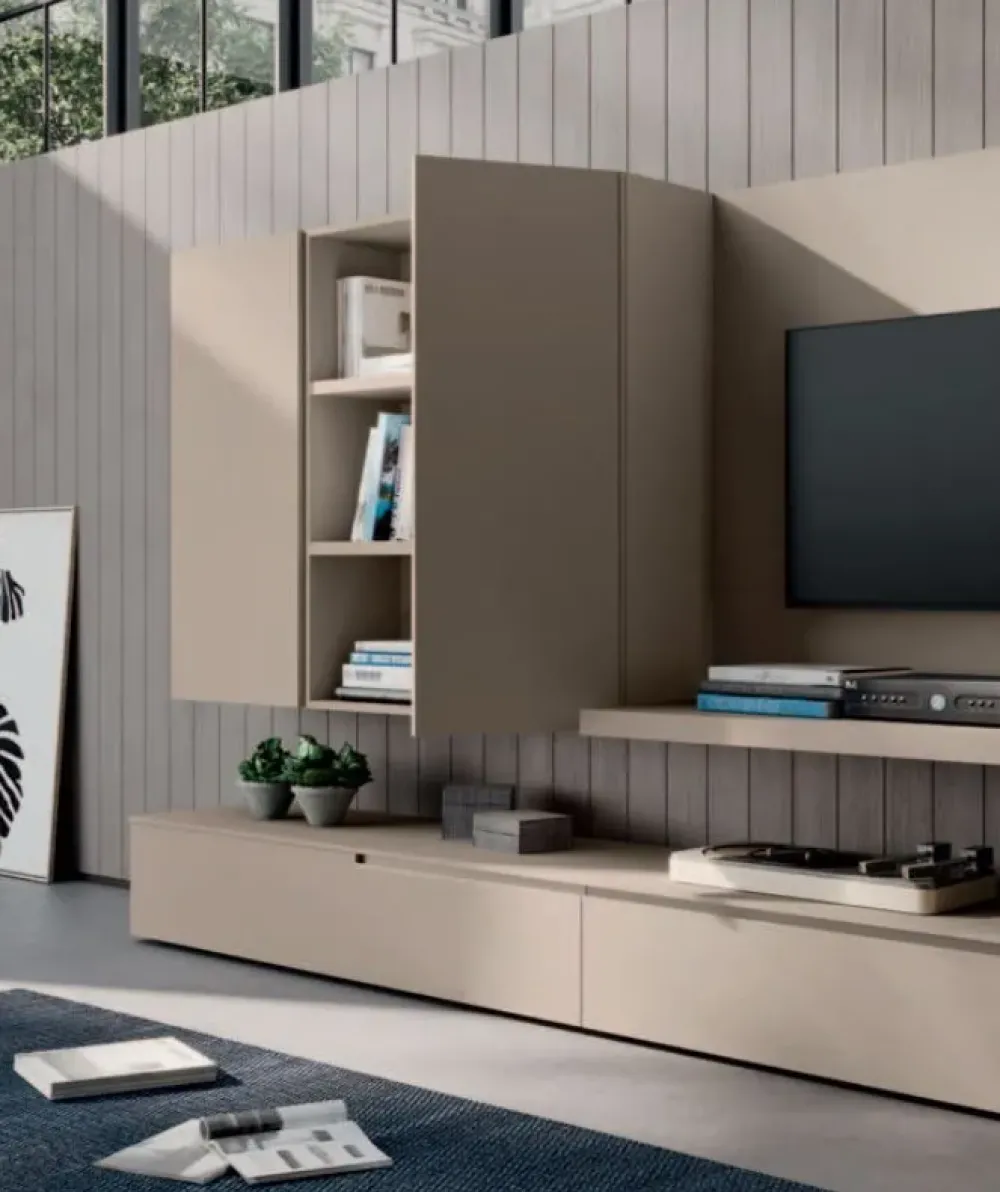 Grazie ai diversi mobili e oggetti accessori con maniglia, questa proposta saprà sfruttare al meglio ogni angolo del tuo living.