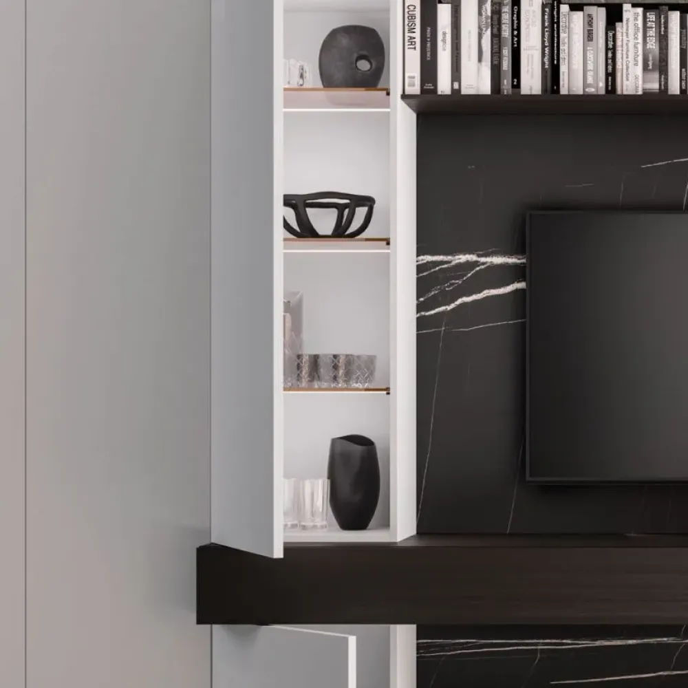 - Posizionamento sospeso: Il soggiorno Orme day 19 è progettato per essere posizionato sospeso, offrendo un aspetto moderno e leggero. Questo permette anche di pulire facilmente sotto il mobile, mantenendo sempre l’igiene e la pulizia del tuo ambiente.
