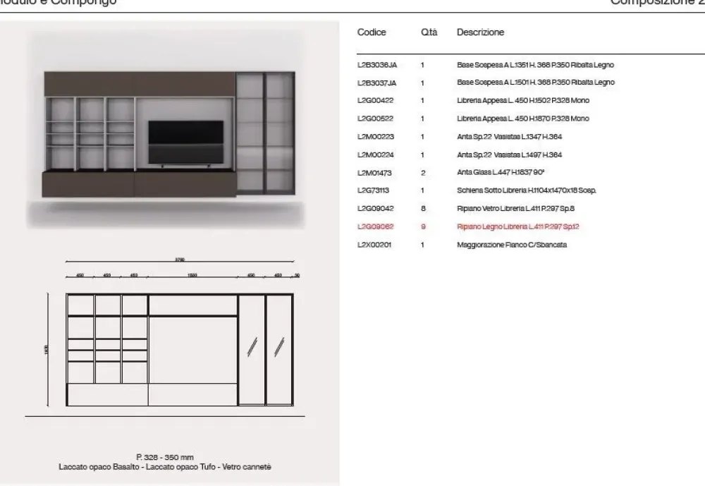 - Larghezza da 351 a 400 cm: Grazie alle dimensioni generose, il soggiorno Orme day 29 offre ampio spazio per organizzare e riporre i tuoi oggetti, garantendo un ambiente ordinato e funzionale.