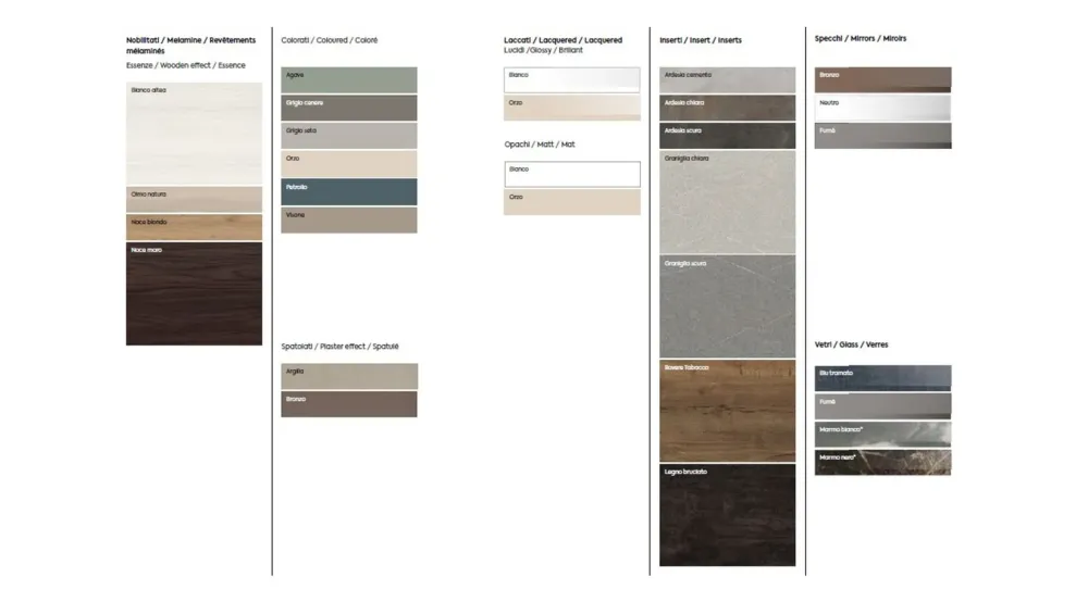 Composizione proposta nelle finiture noce moro e grigio cenere.