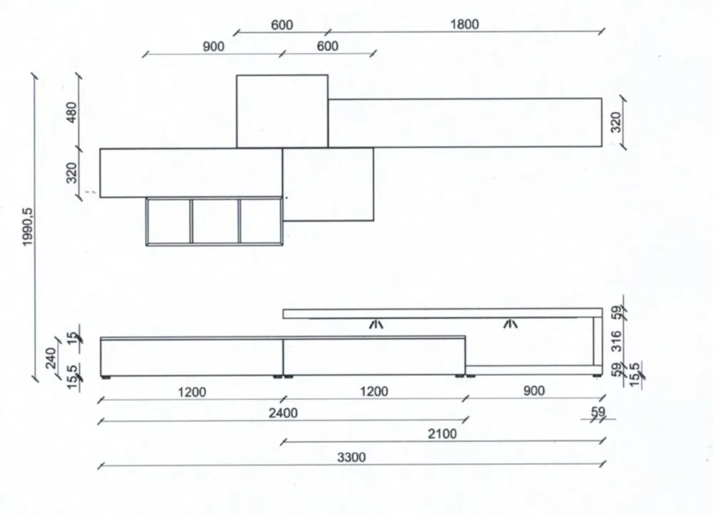 Composizione soggiorno SAN GIACOMO design modello LAMPO in finitura laccato opaco color bianco artico e grigio corda . Completa di quattro pensili con ante push&pull, di un elemento libreria pensile in finitura rovere nodato caramello, di due basi con apertura push&pull e un pianale sospeso in finitura rovere nodato caramello. Il sistema Lampo esplora diversi progetti di interior design contemporaneo, che riflettono i trend dell’abitare più attuali. Ampie superfici, ricercati accostamenti fra materiali di primissima qualità, solidi primari che si compongono in proposte di grande originalità. La dimensione della base in lunghezza è 330 cm, la profondità massima è 55 cm, mentre i pensili hanno un altezza complessiva pari a 112 cm.