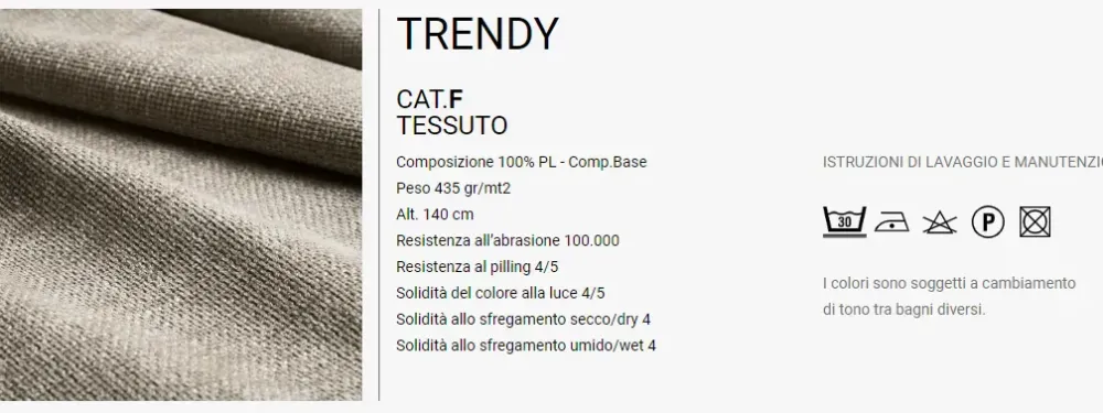- Rivestimento: tessuto