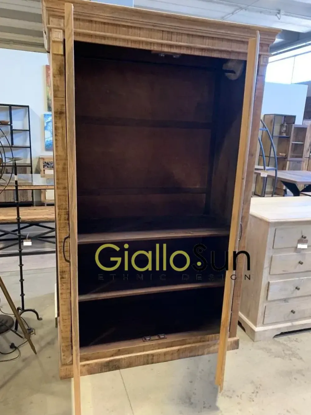 In vero legno massello di mango lavorato a mano, adatta per zona giorno e anche per altri spazi della casa, arreda in stile etnico il tuo spazio casa. Armadio composto da due ante con maniglia, all interno è presente un bastone portabiti e due mensole.
