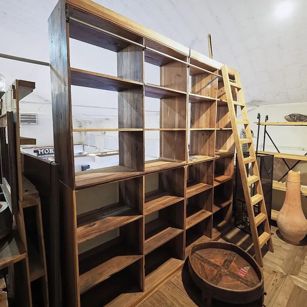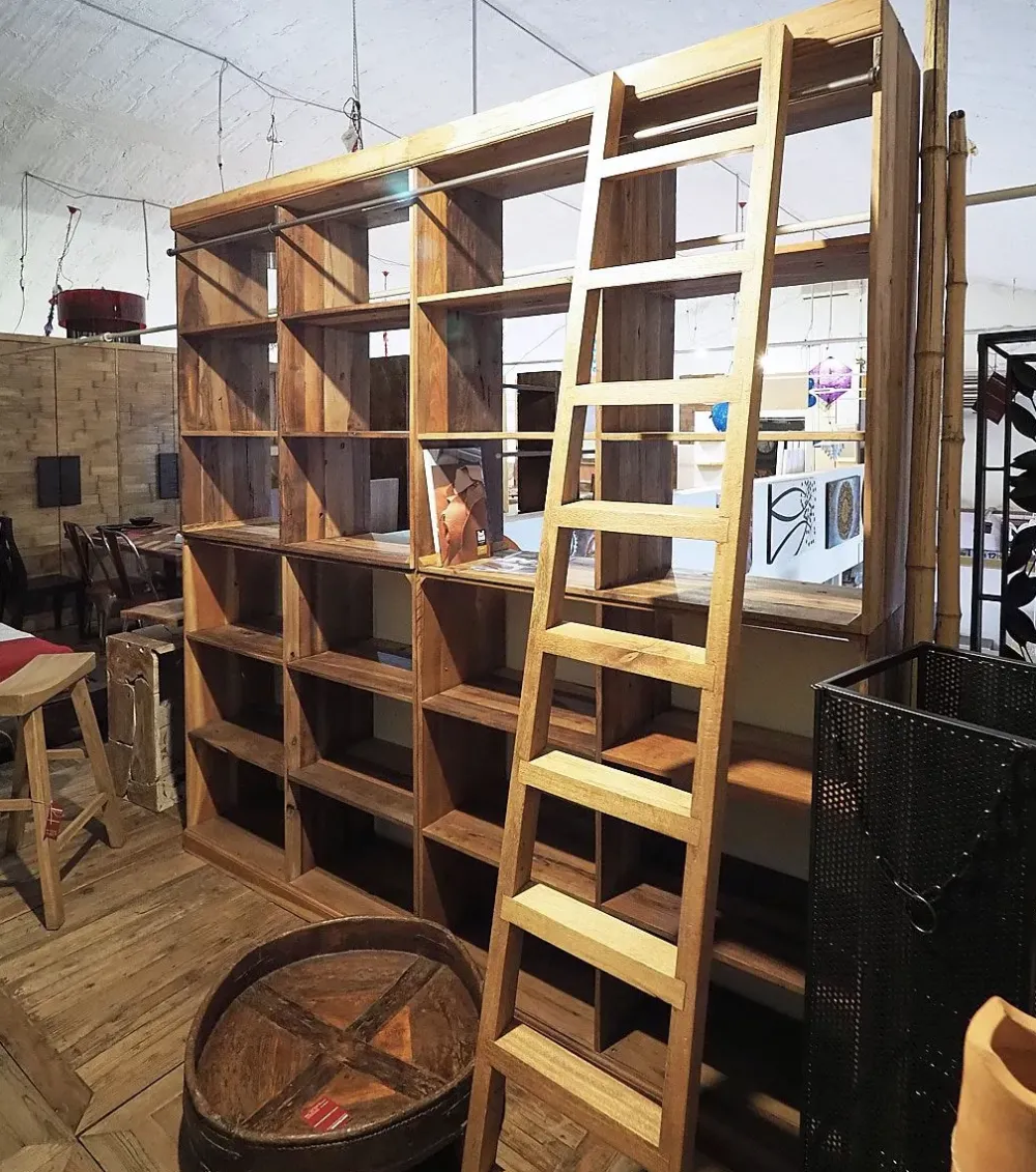 I mobili e oggetti accessori per il living del marchio, come le librerie, sono fondamentali sia dal punto di vista estetico che per quanto riguarda la funzionalità del locale in cui saranno collocati. Potrai utilizzare la libreria Libreria legno con scala nell’immagine come una superficie di appoggio per vari oggetti o come contenitore. L’eccellenza Outlet etnico ti sta aspettando in offerta nel nostro sito.
