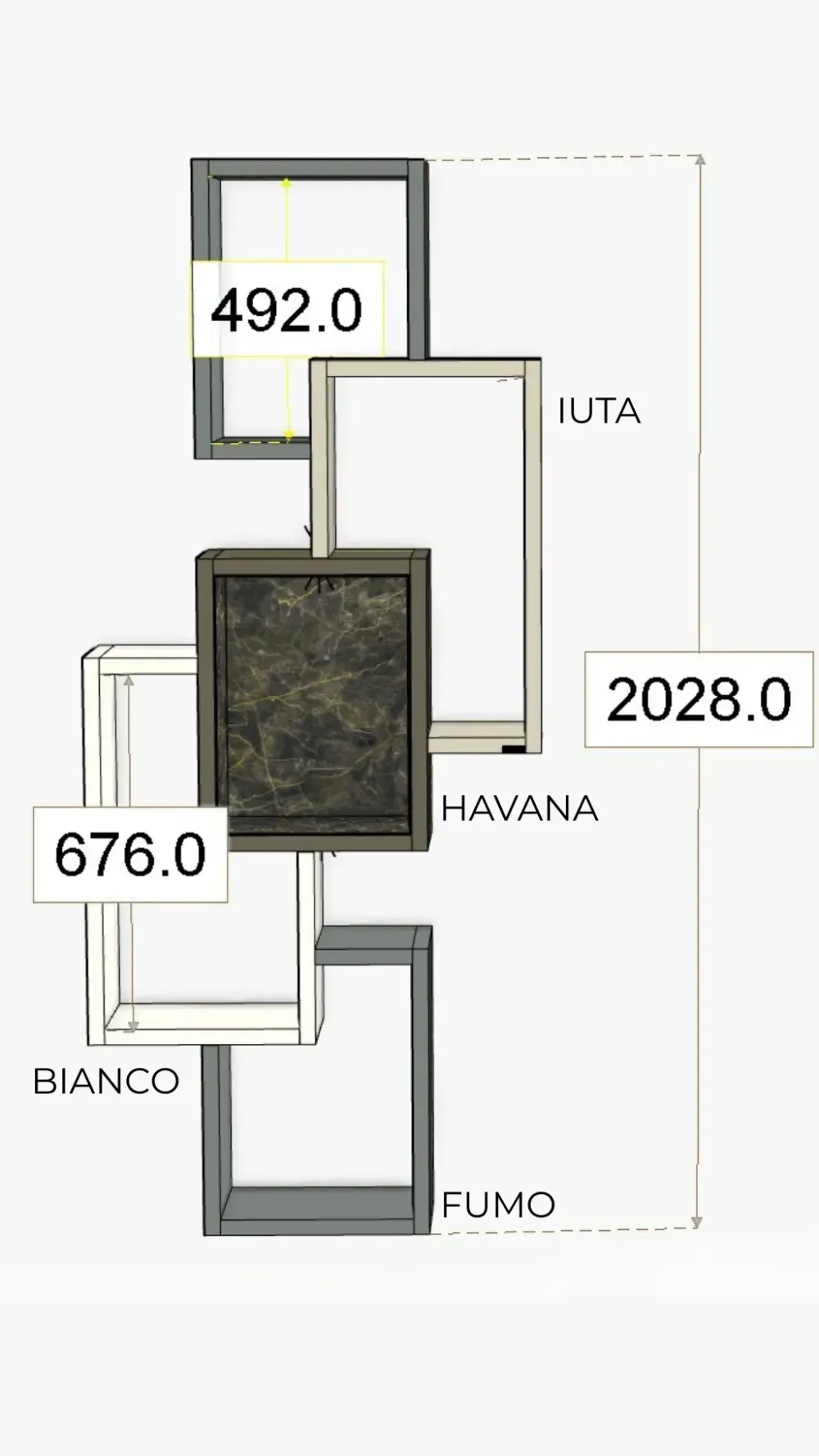 – Laccato fumo, bianco, havana e iuta.