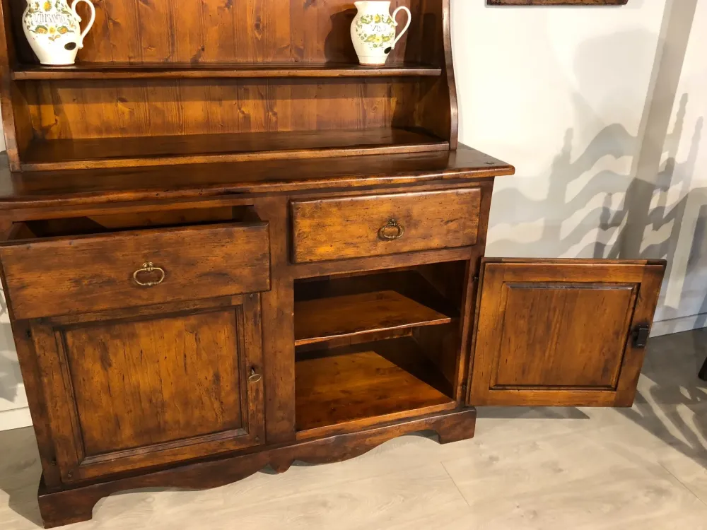 Il legno massello come elemento principale, realizzato da mani sapienti di chi conosce tecniche e tradizioni,eseguito da artigiani professionisti Toscani, in grado,per loro cultura, di realizzare prodotti inevitabilmente unici. Con questa vera Opera d’Arte, possiamo rivivere nel calore del legno e nell’atmosfera di vecchi casali. Artigianalita’ ed eleganza si fondono in questa Credenza con Piattaia,per un gusto classico basandosi su una ripresa di Autentico.