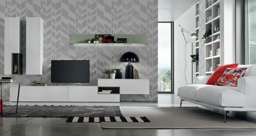 - Forme decise e un design unico connotano questa composizione per il living, rendendola ideale per impreziosire uno spazio in stile moderni.