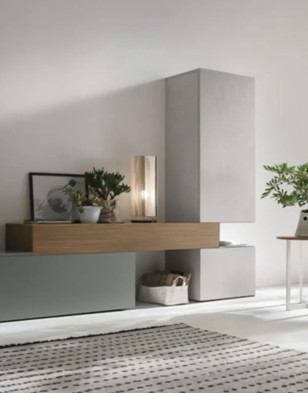 Tra differenti mobili e oggetti accessori push–pull, questa proposta saprà impreziosire il living sfruttando bene ogni angolo.
