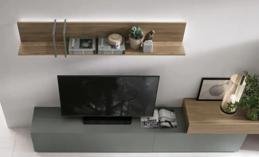 La parete attrezzata modello At114 nell’immagine saprà impreziosire il tuo living sottolineando le doti estetiche del locale: che tu voglia riporci libri, oggetti d’uso prettamente decorativo o la TV, questo mobile ti assicurerà tutta la qualità del brand Tomasella a prezzi imbattibili.