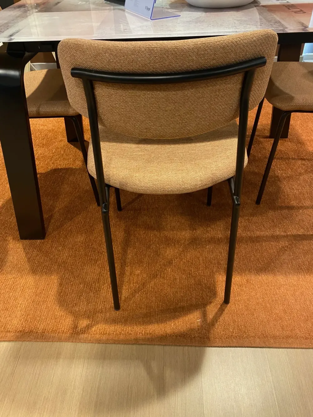 la sedia modello Osaka ha la struttura in metallo colore nero ed il tessuto in ecotex colore cannella. molto bella ed elegante, adattabile ad ogni ambiente.