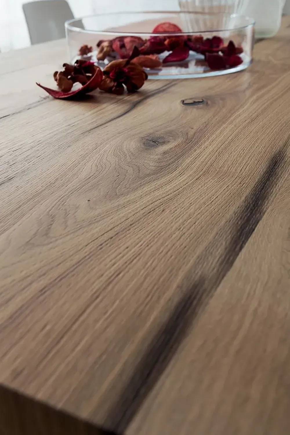 Piano “scortecciato” realizzato con tamburato impiallacciato con morali esterni in rovere massiccio.
