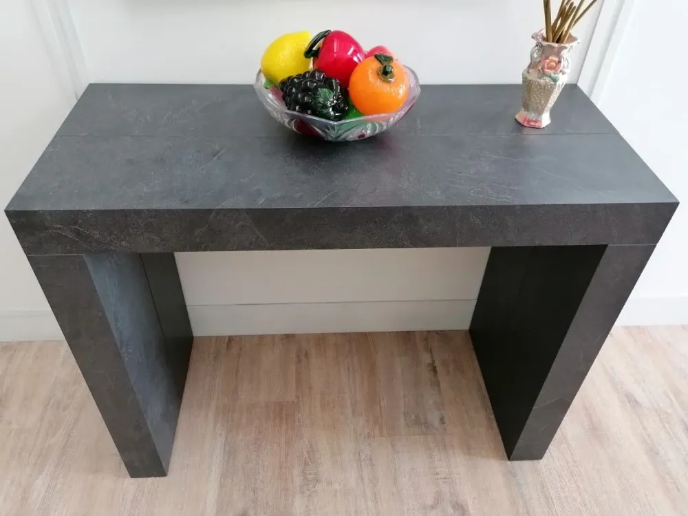 Consolle estensibile in nobilitato Ardesia, meccanismo telescopico in alluminio , 5 allunghe .